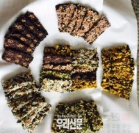 경남한방약초연구소(소장 장사문)가 지리산약초랑영농조합법인(대표 장정옥)과 공동으로 식감과 기능성을 높인 ‘한방약초 김부각’을 개발하여 관심을 모으고 있다.     이번에 개발한 한방약초 김부각은 오미자, 흑미, 뽕잎, 당귀, 치자 등 5가지 약초 추출물을 이용하여 다섯 가지 색깔과 다섯 가지 맛을 표현하였으며, 찹쌀가루 풀을 이용하던 기존 부각 제조 방...
