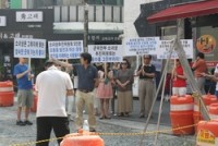 과거 경남의 대표적 유흥가였던 마산 오동동의 상권 활성화를 위한 창원시의 공원조성 부지내에 일부 시민단체가 '위안부 소녀상'을 건립하겠다는 소식에 인근 상인들은 물론, 일반 시민들마저 반대하고 나서 8월15일 건국일 제막식 계획 차질이 예상된다.    ▲ 소녀상 건립을 반대하는 상인들이 집회를 갖고 창원시와 추진위를 성토하고 있다.     © 경남시사우리신...