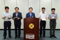 "죄송합니다!!" 고개숙인 창녕군의회 의원들 긴급 기자회견 갖고 대 군민 사과문 발표   후반기 의장단 선거와 관련해 의장과 부의장이 뇌물 공여혐의로 동시에 구속된 초유의 사태가 발생한 창녕군의회 의원들이 대군민 사과 및 기자회견을 갖고 고개를 숙였다.   ▲ "의장단 선거 돈 살포로 물의를 빚어 죄송합니다" 창녕군의회 의원 9명이 26일 긴급 기자회견...