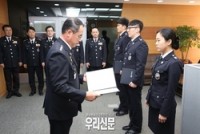 ▲ 김영모 창원해경 서장이 신임 순경들의 전입 신고식을 진행중이다.     © 경남우리신문편집국 창원해양경비안전서(서장 김영모)는 2일 오전 새해 힘찬 출발을 위한 새로운 각오와 결의를 다짐하는‘2017년 시무식’을 가지고 한해 업무를 시작했다.   창원해경서 강당에서 김영모 서장을 비롯한 직원과 의경 약 100여명이 참석한 가운데 정유년(丁酉年) 한...