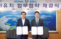 ▲     ©경남소상공인신문 창원시, 진해구에 첨단 알루미늄 선박 조선소 유치 - 조선업체 ㈜피엠지, 500억 투자유치 (경남소상공인신문=창원) 강은주 기자= 창원시(시장 허성무)는 16일 조선업체인 ㈜피엠지(대표이사 김지훈)와 진해구 일원에 중소형 특수선 스마트조선소 유치에 따른 투자협약을 체결했다고 밝혔다. 시는 이번 투자유치가 위기를 겪고 있...