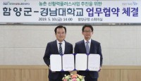 ▲     ©경남소상공인신문 함양 산양삼 산업 글로벌화 날개 달다 - 식품의약품안전처 건강기능식품 등록 목표 추진(경남소상공인신문=함양) 박순신 기자= 함양군(군수 서춘수)과 경남과학기술대학교(총장 김남경)는 16일 함양군청 소회의실에서 농업회사법인 주식회사 KN바이오(대표 백승한)에 ‘유효성분이 극대화된 활성산양삼 제조방법 및 이를 이용한 건강기능식...