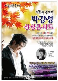 가을사랑 줍기! 10월의 마지막 밤을 박강성과 크루즈 여행으로 가을사랑 선상 추억을 만들고 간직 하세요.   영혼의 목소리 박강성 선상 콘서트가 오는 30일 오후 5시~10시(1부 오후5시~7시,2부 8시~10시)까지 창원국동크루즈 선상라이브홀에서 화려하게 펼쳐진다. ▲ 가을사랑줍기!10월의 마지막 밤을 박강성과 크루즈 여행으로 가을사랑 선상 추억을 만들...